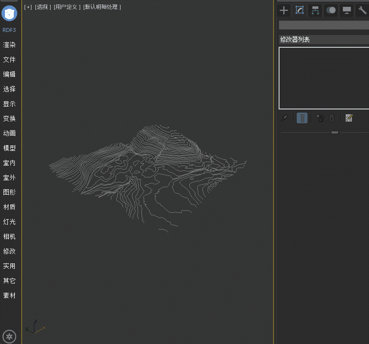 传统的地形创建方式可能需要手动绘制和调整大量的模型细节,过程繁琐且耗时。而使用R-地形修改器,只需等高线的线条添加R-地形修改器,R-地形修改器就能迅速根据这些等高线数据生成相应的地形模型,大大节省了时间和精力。