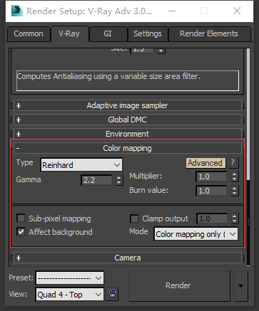 - 如果你不想自动校正一张副图,可以折叠选项中将渲完校正副本选项关闭。但是我们并不推荐这么做,因为如果你对gamma掌握得不好的话,max将保存出gamma错误的图来。